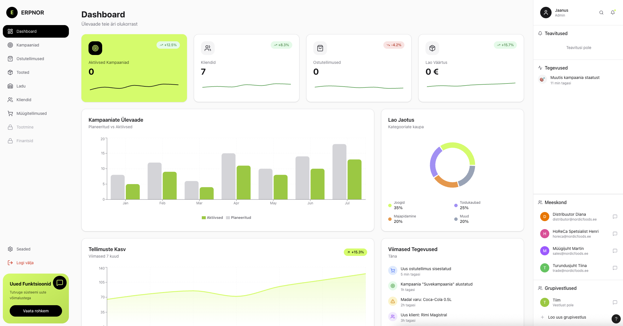 ERPNOR koondab müügi, kampaaniad, laoseisud ja rahavood ühte otsustusvaatesse.