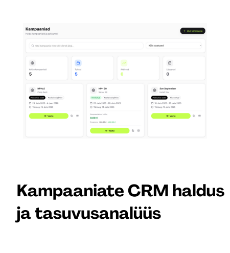 ERP-sisesed töövood automatiseerivad kampaaniate planeerimist, tellimusi, laojälgimist ja sisekommunikatsiooni.