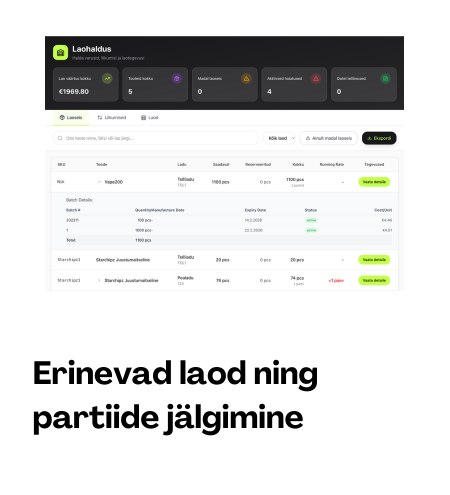 Lao liikumised, müügi trendid, kampaaniate staatus ja rahavoogude muutused joonistuvad välja automaatselt.